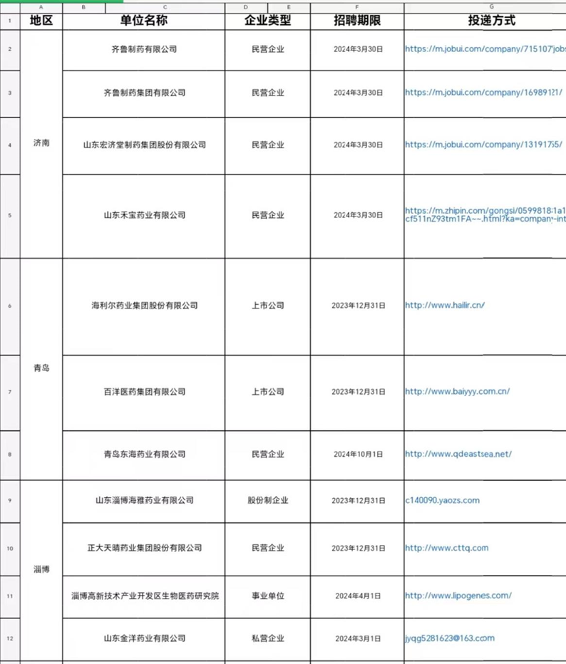 招聘岗位:药物研发员,片剂,胶囊剂生产员等
