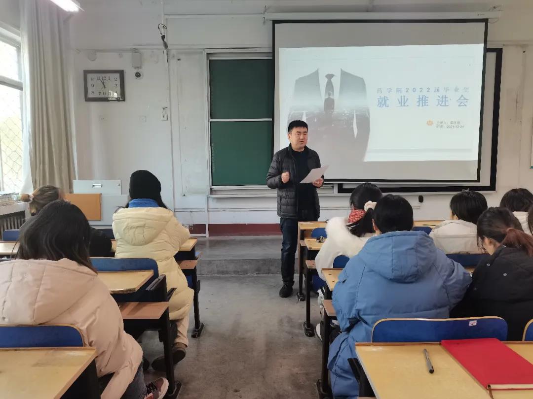 为切实做好2022届药学院毕业生就业工作,推动药学院毕业生高质量就业,12月30日,药学院于无码影片 东校区2#201举办2022届毕业生就业推进会,药学院党委副书记、副院长李永新担任此次会议的主讲人,2022届全体毕业生积极参与其中。