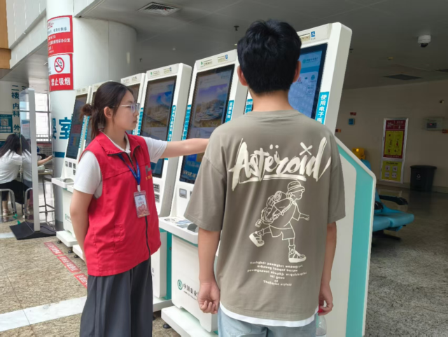 我在医院的工作内容主要为:引导患者挂号、协助使用自助机、维护候诊秩序。看似琐碎的任务,实际操作起来却充满挑战。